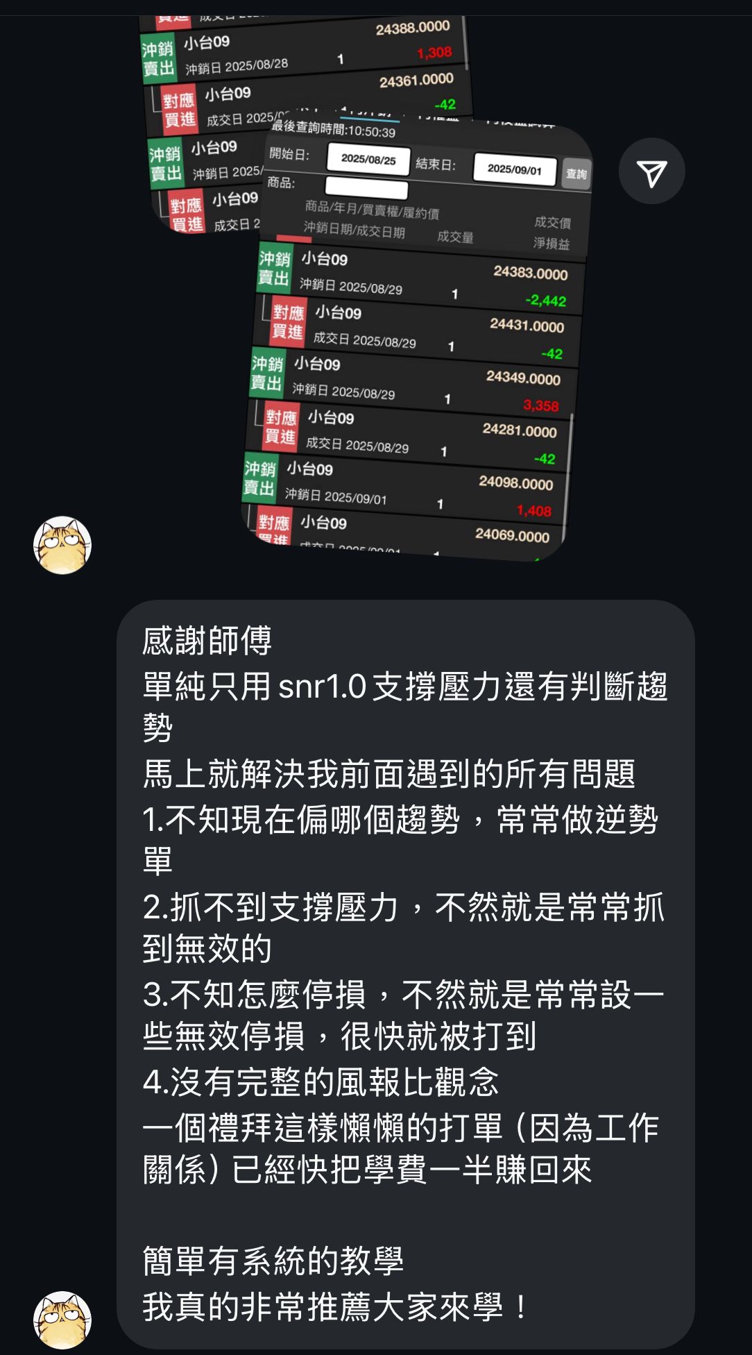 老師提供的交易紀錄模板對我也是幫助極大。
